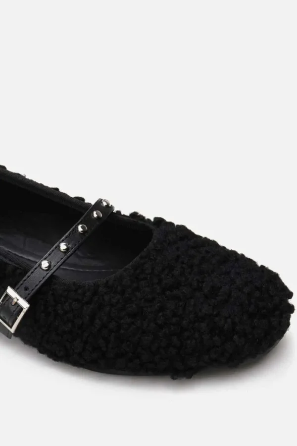 کفش تخت زنانه بابت مشکی پشمالو 7279 یک انتخاب عالی برای افرادی است که به دنبال راحتی و زیبایی در یک کفش روزمره هستند.