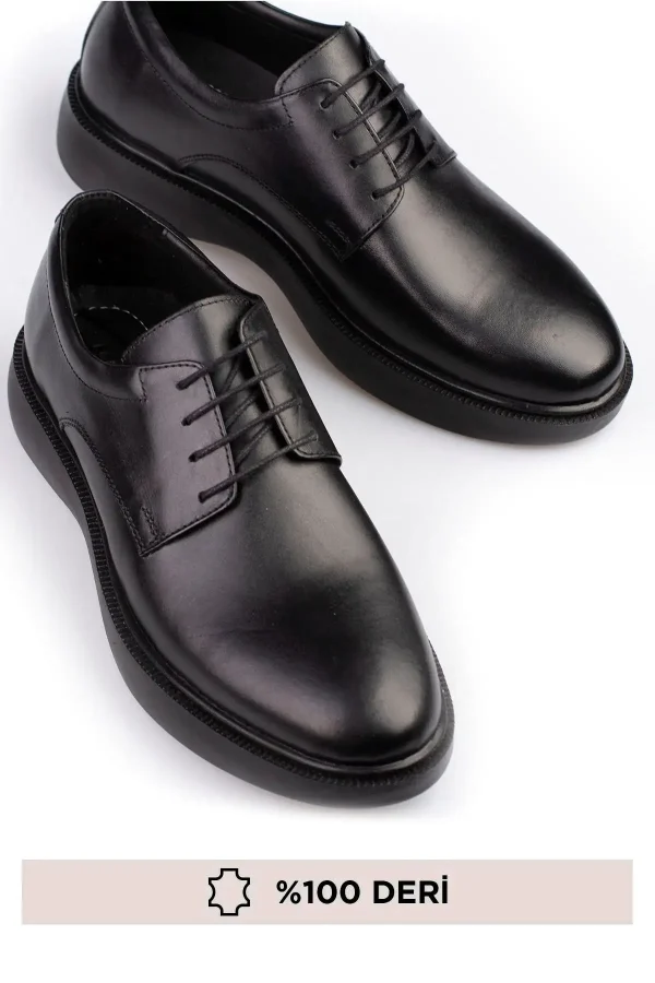 جنس این کفش از چرم اصل و با کیفیت تهیه شده است که علاوه بر زیبایی، دوام و طول عمر بالایی نیز دارد. لژ ضخیم این کفش به شما کمک میکند تا در طول روز احساس راحتی بیشتری داشته باشید و همچنین قد شما را بلندتر نشان میدهد.