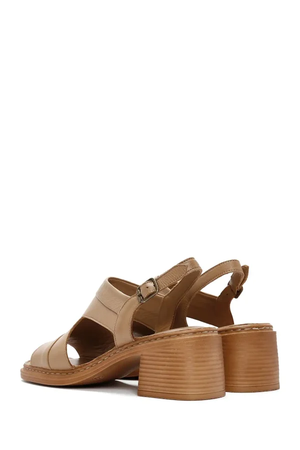 کفش صندل زنانه چرم پاشنه بلند عریض بند دار رنگ شتری، انتخابی ایدهآل برای فصل گرم است. طراحی جذاب و رنگ شتری این کفش، به راحتی با انواع لباسها هماهنگ میشود و استایلی خوشتخت و شیک به شما میبخشد.